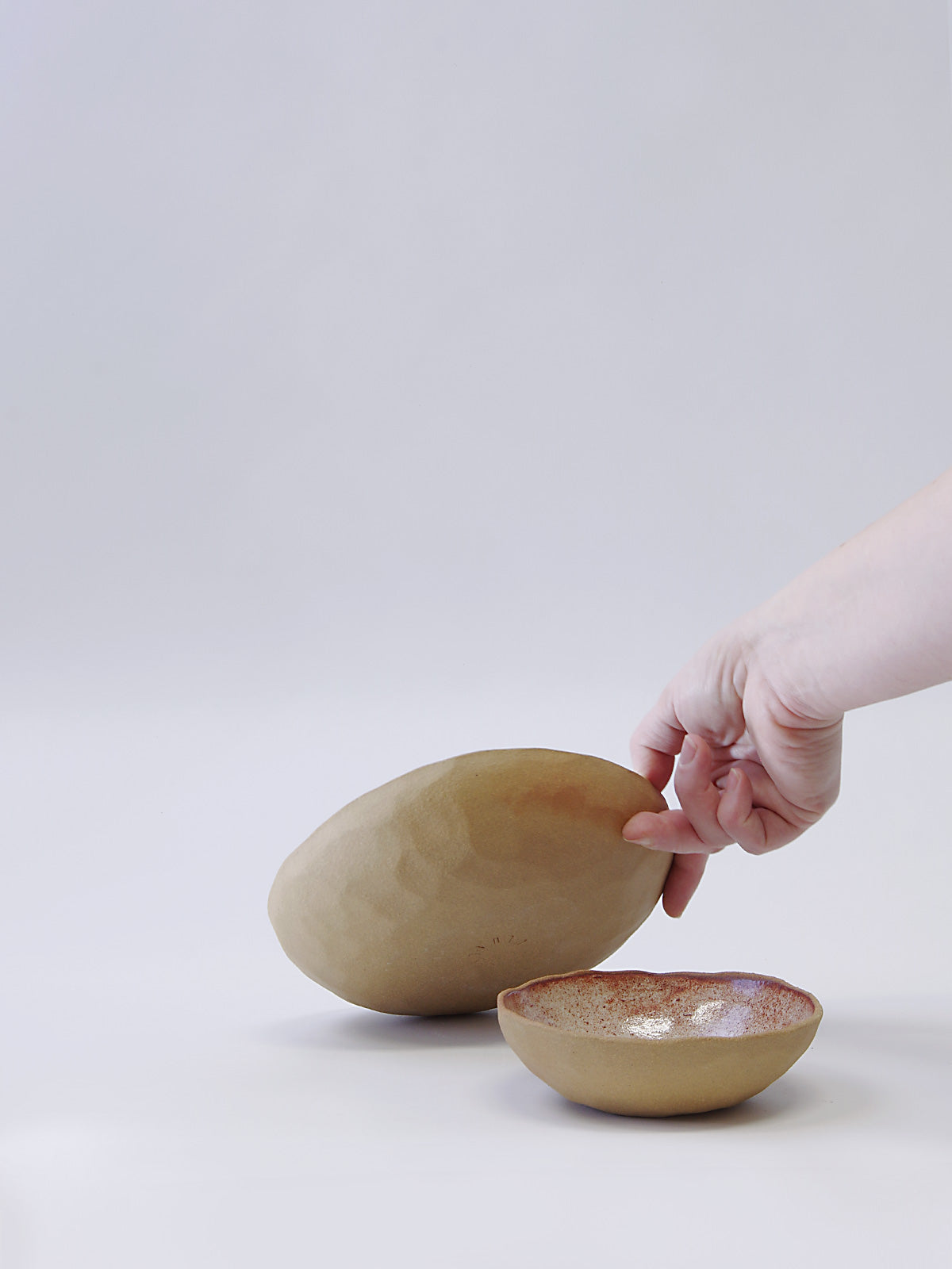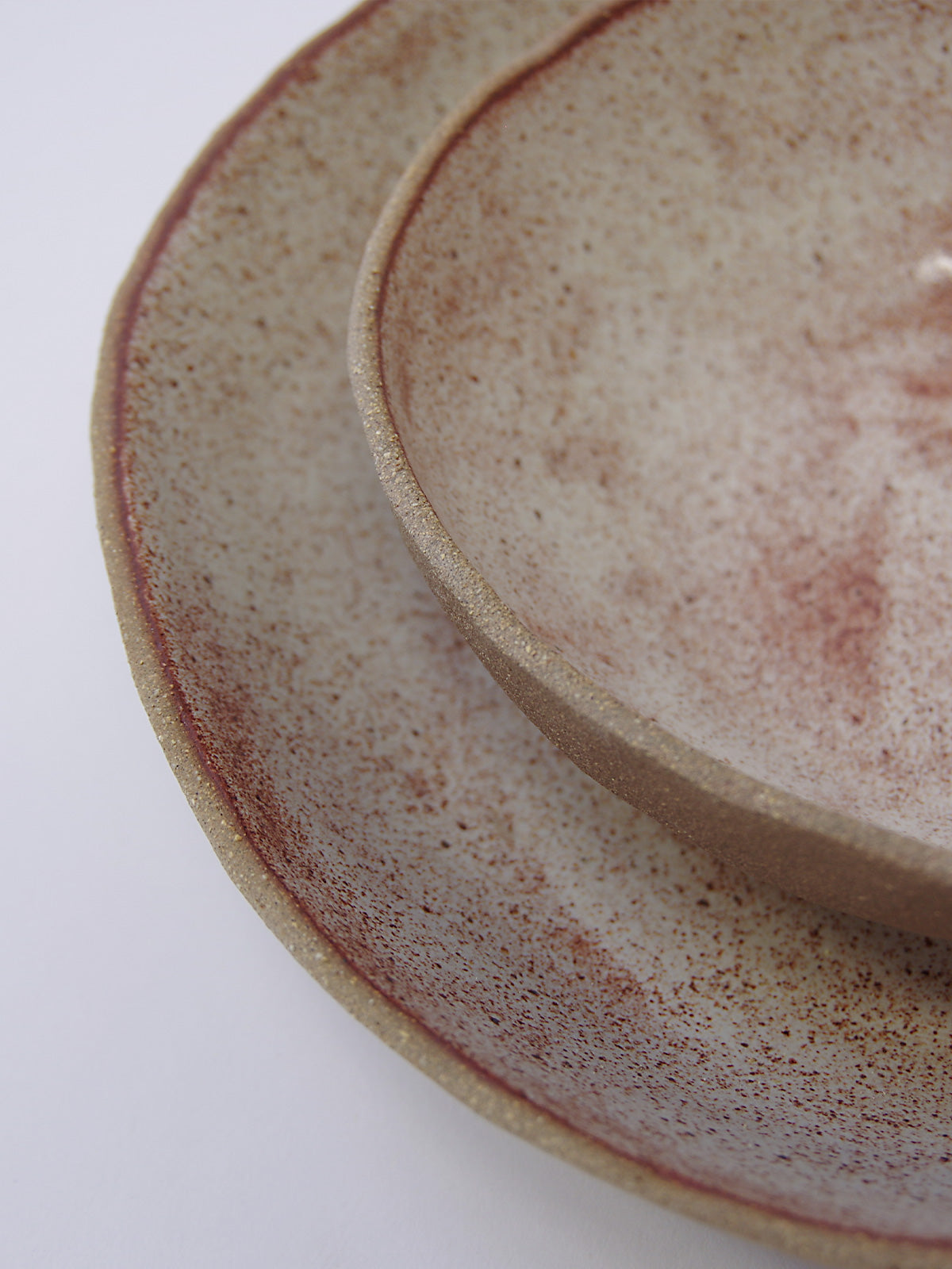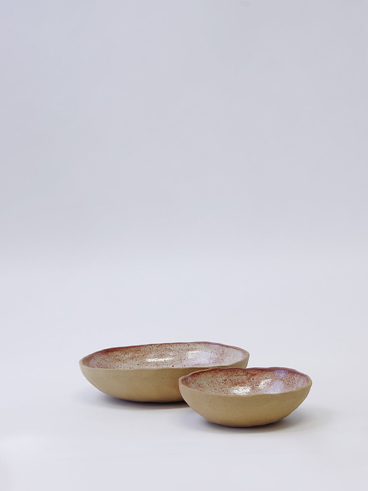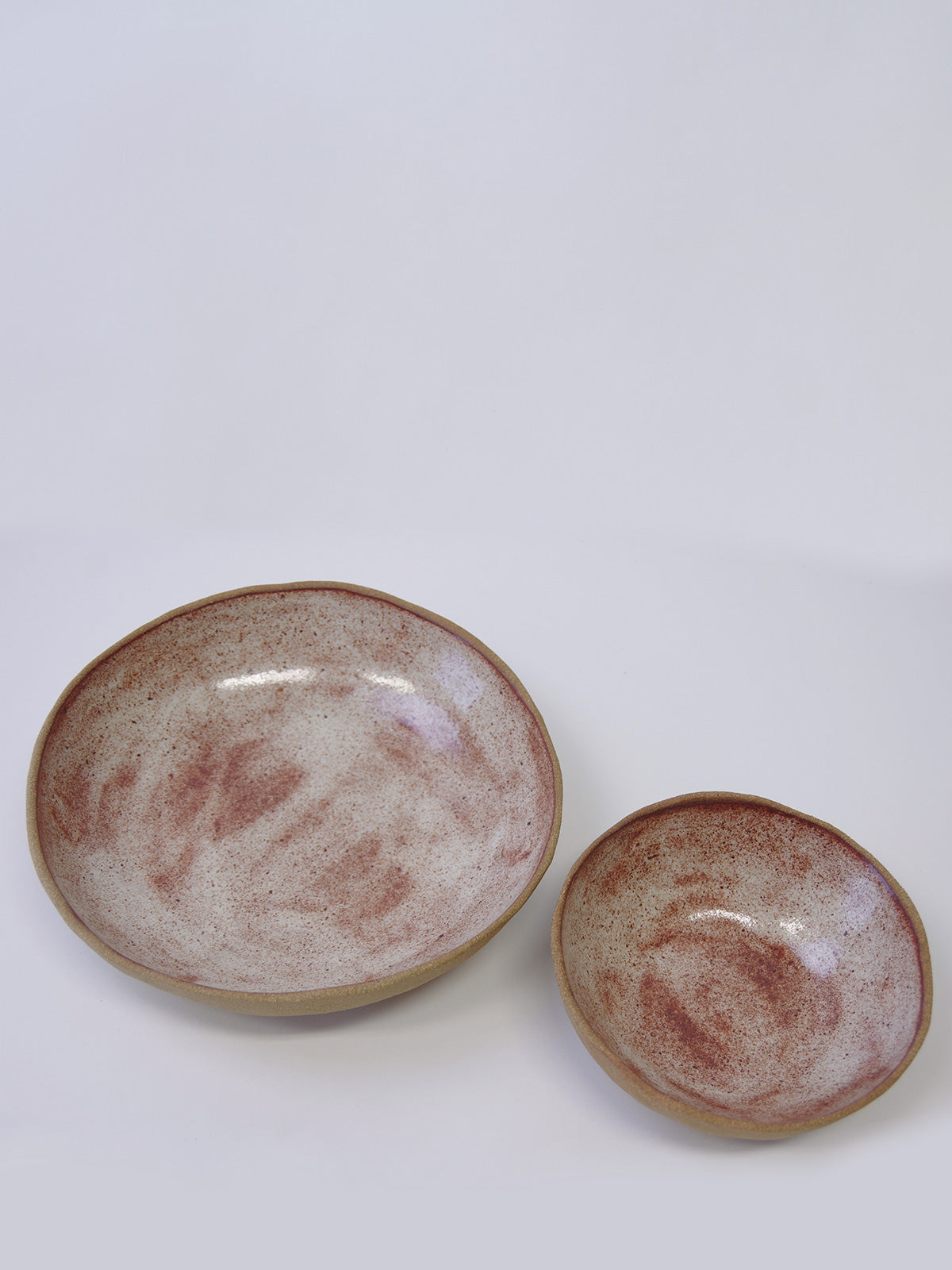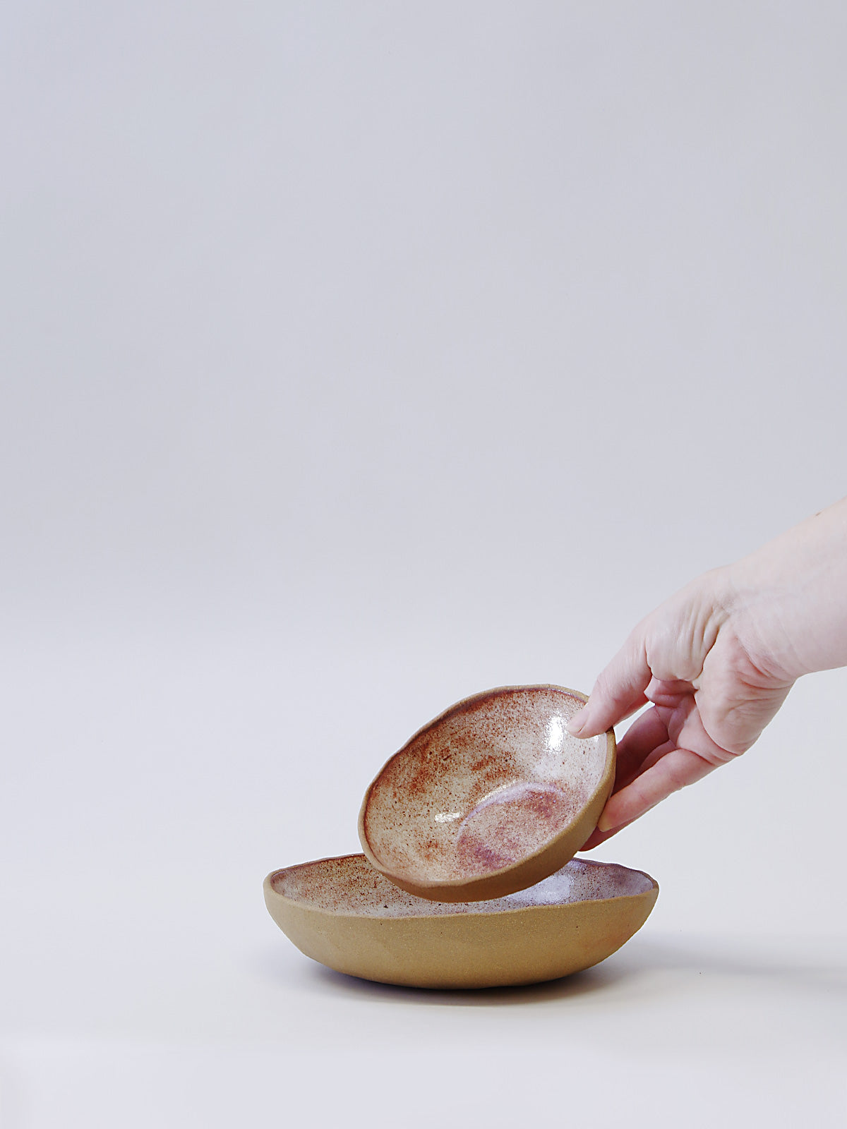 Set includes a two bowls in different sizes for your slow morning ritual. Brown stoneware with beige shiny glaze with speckles. Exterior is unglazed natural surface. Machine washable.